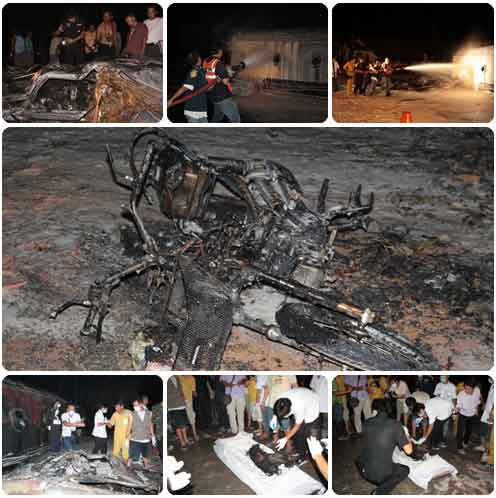 นอกจากนี้ยังพบว่ามีผู้เสียชีวิตและได้รับบาดเจ็บด้วยโดยผู้เสียชีวิตติดอยู่ในรถยนต์เก๋งคันดังกล่าว รวมทั้งมีคนบาดเจ็บภายในรถยนต์บรรทุกน้ำมันและภายในบ้านต่างร้องครวญครางขอความช่วยเหลือจำนวน 2 คน เจ้าหน้าที่จึงระดมกำลังหน่วยบรรเทาสาธารณภัยและหน่วยดับเพลิงจากฝ่ายปกครองอำเภอและเทศบาล ต.ม่วงคำ และองค์กรปกครองส่วนท้องถิ่นข้างเคียงอีกหลายแห่งเร่งฉีดพ่นน้ำและพาผู้ได้รับบาดเจ็บออกจากเปลวเพลิงได้ทั้งหมด จากนั้นช่วยกันนำผู้บาดเจ็บออกมาส่งโรงพยาบาลอย่างเร่งด่วน จากนั้นได้ระดมกันฉีดพ่นน้ำโดยใช้เวลานานกว่า 1-2 ช.ม.จึงสามารถควบคุมเพลิงเอาไว้ได้ และได้ประสานกับทางท่าอากาศยานแม่ฟ้าหลวงนำรถฉีดโฟมมาสกัดด้วย หลังเพลิงสงบเจ้าหน้าที่ได้เก็บกู้หลักฐานพร้อมแพทย์เวรชันสูตรพลิกศพก่อนส่งไปเก็บไว้โรงพยาบาลพานเพื่อรอญาติผู้ตายนำไปบำเพ็ญกุศลต่อไป