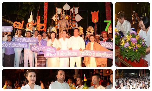 างเมืองเชียงรายครบ 750 ปี โดยมีนายสมพงษ์ กูลวงค์ นายกเทศมนตรีนครเชียงราย คณะผู้บริหารเทศบาล พนักงานเทศบาล ประชาชนในเขตเทศบาล ถวายพานพุ่มหรือพานดอกไม้ เพื่ออุทิศถวายเป็นราชกุศลแด่