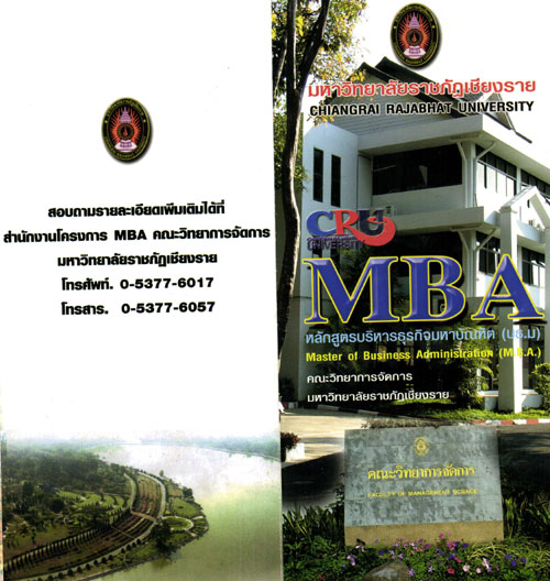 คณะวิทยาการจัดการมหาวิทยาลัยราชภัฏเชียงราย เปิดรับสมัครผู้ที่สนใจและผู้ที่กำลังศึกษาระดับปริญญาตรีภาคเรียนสุดท้าย เข้าศึกษาต่อในระดับปริญญาโท หลักสูตรบริหารธุรกิจมหาบัณฑิต สาขาวิชาการจัดการทั่วไป