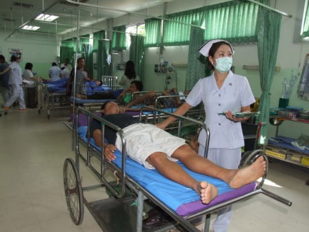 ด้านนายแพทย์จรัญ มะโน รักษาการผู้อำนวยการโรงพยาบาลเชียงคำ ที่มาเฝ้าดูอาการคนไข้ด้วยตนเอง ระบุว่า ตั้งแต่เมื่อวานเย็นที่ผ่านมาได้มีชาวบ้านเดินทางเข้ารับการรักษาตัวด้วยอาการปวดท้อง ท้องเสียอย่างรุนแรงอย่างต่อเนื่อง รวมถึงผู้ป่วยมีอาการไข้ขึ้นสูงด้วย และมากสุดในวันนี้แล้วกว่า 100 ราย โดยมีผู้ป่วยแอดมิดจำนวน 36 ราย อาการหนัก 2 รายต้องเข้าห้องไอซียูเนื่องจากเกิดอาการช็อกเพราะร่างการขาดน้ำอย่างรุนแรง ซึ่งล่าสุดอาการผู้ป่วยทั้ง 2 รายปลอดภัยแล้ว ส่วนที่เหลือแพทย์อนุญาตให้กลับบ้านได้