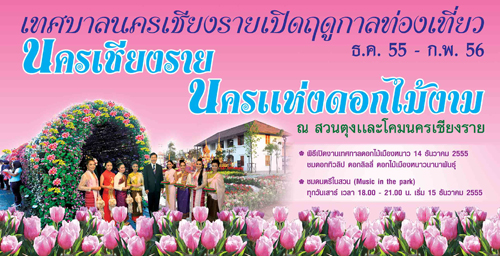 นายวันชัย จงสุทธานามณี นายกเทศมนตรีนครเชียงราย กล่าวว่า “ในปีนี้เทศบาลนครเชียงราย เปิดฤดูกาลท่องเที่ยวด้วยการจัดงานประเพณีลอยกระทง ประจำปี ๒๕๕๕ ในระหว่างวันที่ ๒๗ – ๒๙ พฤศจิกายน ๒๕๕๕ ณ สวนตุงและโคมนครเชียงราย ทั้งนี้เพื่อเป็นส่งเสริมการท่องเที่ยวของจังหวัดเชียงรายและร่วมรักษาขนบธรรมเนียม ประเพณีศิลปวัฒนธรรมล้านนาของจังหวัดเชียงรายให้เป็นที่รู้จักมากยิ่งขึ้น”