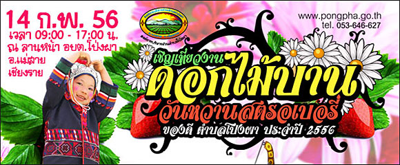 ด้วย อบต.โป่งผา ได้กำหนดจัดงาน ดอกไม้บาน วันหวานสตรอเบอรี่ ของดี ต.โป่งผา ประจำปี 2556
