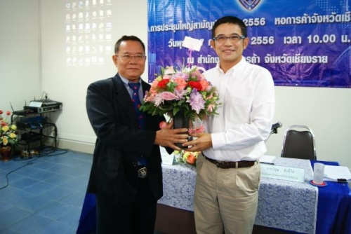 วันนี้(28 ก.พ.) ผู้สื่อข่าวรายงานจากจ.เชียงราย ว่าการประชุมใหญ่สามัญประจำปี 2556 หอการค้าจังหวัดเชียงราย มีวาระสำคัญ คือ การเลือกตั้งประธานคนใหม่ แทนนายชวลิต สุธรรมวงศ์ อดีตประธานที่หมดวาระลง ซึ่งผลการเลือกตั้งปรากฏว่านายบุญธรรม ทิพย์ประสงค์ รองประธานหอการค้าจังหวัดเชียงราย และประธานหอการค้าอำเภอแม่สาย ได้รับเลือกตั้งด้วยเสียงเป็นเอกฉันท์