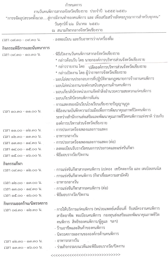 จังหวัดเชียงราย ร่วมกับ อบจ.เชียงราย จัดกิจกรรมวันคนพิการสากล ประจำปี 2556