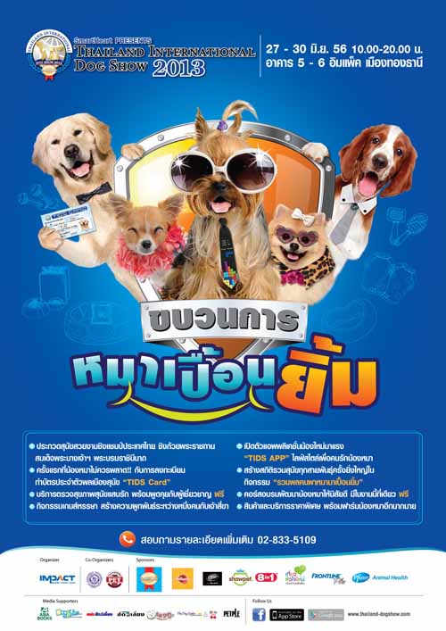 เตรียมเปิดรับความสุขและร่วมสนุกสนานไปกับมหกรรมของคนรักสุนัขครั้งยิ่งใหญ่ ที่คุณและเพื่อนรัก 4 ขาจะไม่มีวันลืม โดยฝ่ายโครงการ บริษัท อิมแพ็ค เอ็กซิบิชั่น แมเนจเม้นท์ จำกัด ร่วมกับ สมาคมอุตสาหกรรมผลิตภัณฑ์สัตว์เลี้ยงไทย พร้อมใจกันมอบรอยยิ้มให้คนรักสุนัข กับงาน SmartHeart presents Thailand International Dog Show 2013 ภายใต้คอนเซ็ป “ขบวนการหมาเปื้อนยิ้ม” ระหว่างวันที่ 27 – 30 มิถุนายน 2556 ณ อาคาร 5 – 6 อิมแพ็ค เมืองทองธานี