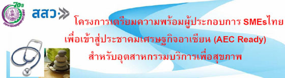 สถาบันพัฒนาวิสาหกิจขนาดกลางและขนาดย่อม (สถาบันพัฒนา SMEs หรือISMED)สถาบันเครือข่ายของกระทรวงอุตสาหกรรม และสมาคมการท่องเที่ยวเชิงการแพทย์ไทย ผู้ดำเนินโครงการเตรียมความพร้อมผู้ประกอบการ SMEs ไทย เพื่อเข้าสู่ประชาคมเศรษฐกิจอาเซียน (AEC Ready) สำหรับอุตสาหกรรมบริการเพื่อสุขภาพ โดยการสนับสนุนของสำนักงานส่งเสริมวิสาหกิจขนาดกลางและขนาดย่อม (สสว.) ขอเชิญผู้ประกอบการจังหวัดเชียงราย กลุ่มอุตสาหกรรมบริการเพื่อสุขภาพ ประกอบด้วย โรงพยาบาล/คลินิกเฉพาะทาง สถานพักฟื้น/สถานฟื้นฟูสุขภาพ แพทย์แผนไทย/แพทย์ทางเลือก สปา/ผลิตภัณฑ์จากสมุนไพร ผู้ผลิตยาแผนปัจจุบัน ผู้ผลิตอุปกรณ์และเครื่องมือทางการแพทย์ และผู้ประกอบการในธุรกิจที่เกี่ยวข้อง เช่น โรงแรม/ตัวแทนท่องเที่ยว/มัคคุเทศก์/ล่าม/บริการรถเช่า เข้าร่วมสัมมนาทางวิชาการ AEC Ready เพื่อให้รู้ เข้าใจ และพร้อมเข้าสู่ AEC อย่างมีศักยภาพ