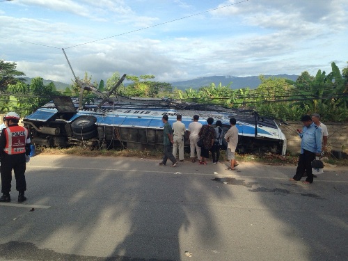 ทัวร์กรุงเทพฯ-เชียงราย ชนเสาไฟฟ้าขาดตาย 1 เจ็บเพียบ