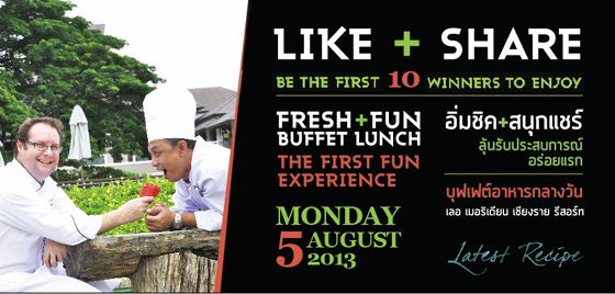 · ลุ้นรับบัตรกำนัลบุฟเฟต์อาหารกลางวันเพื่อมาอิ่มชิค+อร่อยชิลในวันที่ 5 สิงหาคม 2556 |