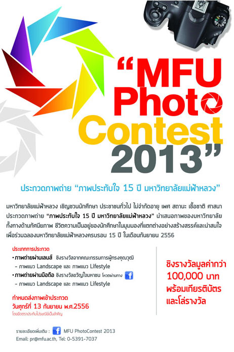FanPage : https://www.facebook.com/pages/MFU-Photocontest-2013/377847579003378