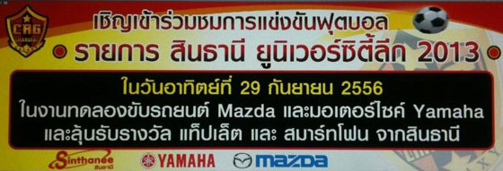 เชิญเข้าร่วมชมการแข่งขันฟุตบอล รายการสินธานี ยูนิเวอร์ซิตี้ลีก 2013