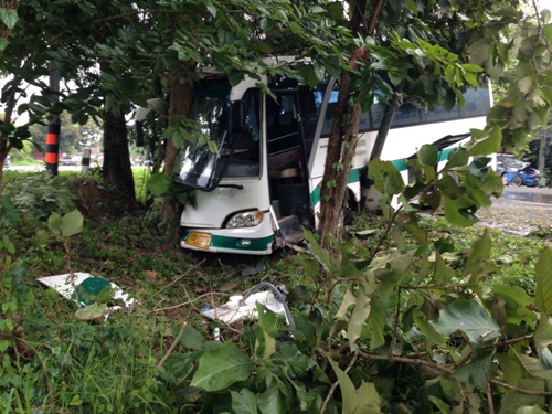 เช้าวันนี้ (1 ต.ค.56) ร.ต.อ.อรรถพร บุรีคำ ร้อยเวนร สภ.แม่ลาว จ.เชียงราย ได้รับแจ้งว่าเกิดอุบัติเหตุรถบัสโดยสารพุ่งชนต้นไม้เกาะกลางถนนพหลโยธิน สายเชียงราย-พะเยา บริเวณหน้าโรงเรียนอนุบาลจอมหมอกแก้ว ต.จอมหมอกแก้ว มีผู้บาดเจ็บจำนวนมาก จึงพร้อมหน่วยกู้ภัยไปตรวจสอบ