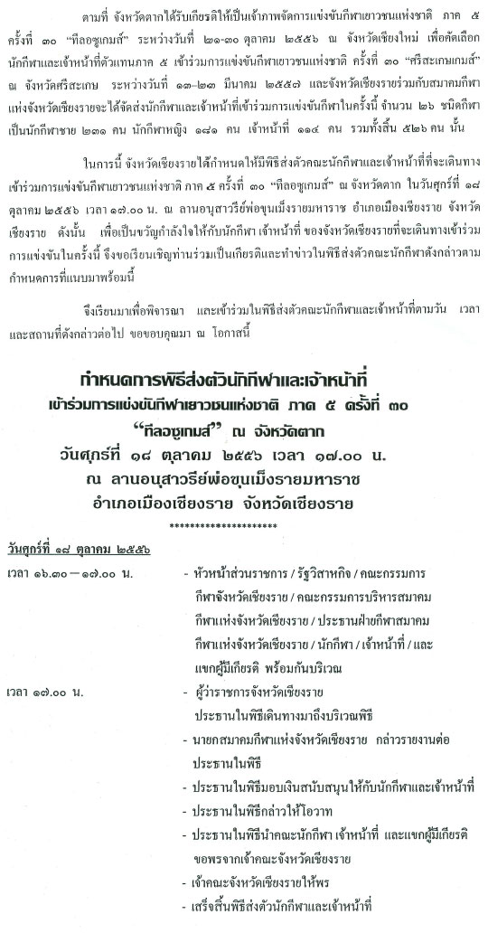 พิธีส่งตัวนักกีฬาเข้าร่วมการแข่งขันกีฬาเยาวชนแห่งชาติ ภาค 5 ครั้งที่ 30 ทีลอซูเกมส์