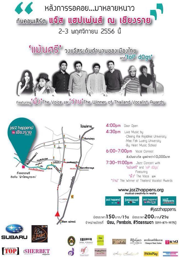 งาน JazZhappens ณ เชียงราย วันที่ 2-3 พฤศจิกายน 2556 (สถานที่ติดกับฟ้าใสหมูกระทะ)