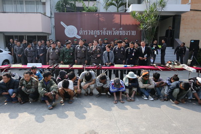 จังหวัดเชียงรายสนธิกำลังตำรวจ ทหาร ฝ่ายปกครอง กวาดล้างสิ่งผิดกฎหมาย ได้ของกลางเพียบ