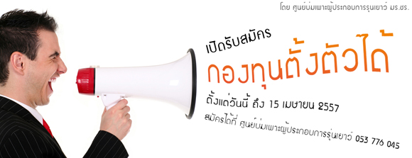 !!ด่วนรับสิทธิกู้ยืม "กองทุนตั้งตัวได้ ครั้งที่2" ได้ที่ศูนย์บ่มเพาะผู้ประกอบการรุ่นเยาว์ มหาวิทยาลัยราชภัฏเชียงราย