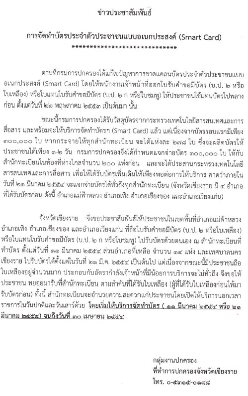 การจัดทำบัตรประจำตัวประชาชน (Smart Card)